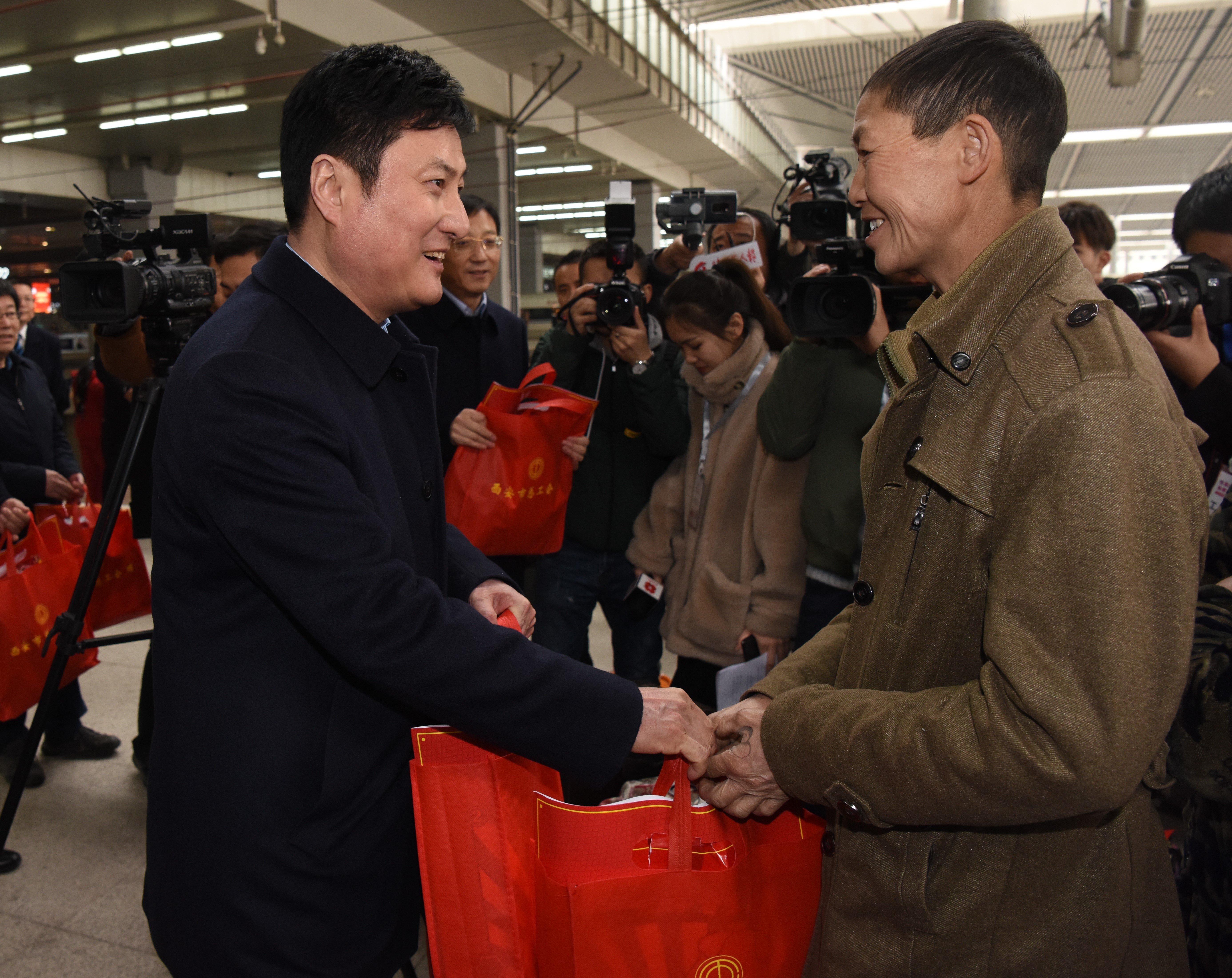 “工友们,兄弟姐妹们!我宣布,川籍务工人员返乡专列现在出发。”1月28日是农历小年,上午11时30分,在西安北客站26站台,省人大常委会副主任、省总工会主席郭大为宣布发车令。这里正在举行“2019暖心高铁专列”发车仪式,西安市人大常委会副主任、市总工会主席薛振虎代表市委、市政府和市总工会致辞,川籍务工人员代表杨金华发言。仪式由西安市总工会常务副主席王军主持。