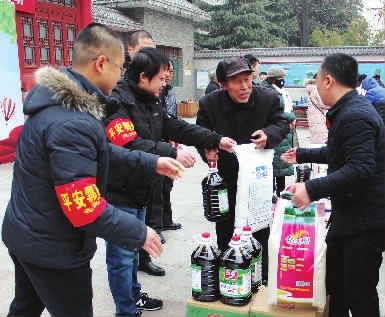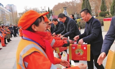 碑林区总工会以“关爱农民工、温暖回家路”为主题,为全区3527名建筑工人、环卫保洁、热力供暖、保安、勤杂人员等农民工送上猪肉、饺子粉、水晶饼、糖果、瓜子、花生等年货;区总工会干部慰问供热一线员工,向春节期间依然坚守岗位,为城区人民供暖服务的工作人员表示了感谢;1月29日,区总工会干部前往蓝田县辋川镇七安子村看望扶贫对象,为他送去米面油、牛奶、糕点、馒头、蔬菜、水果等年货。