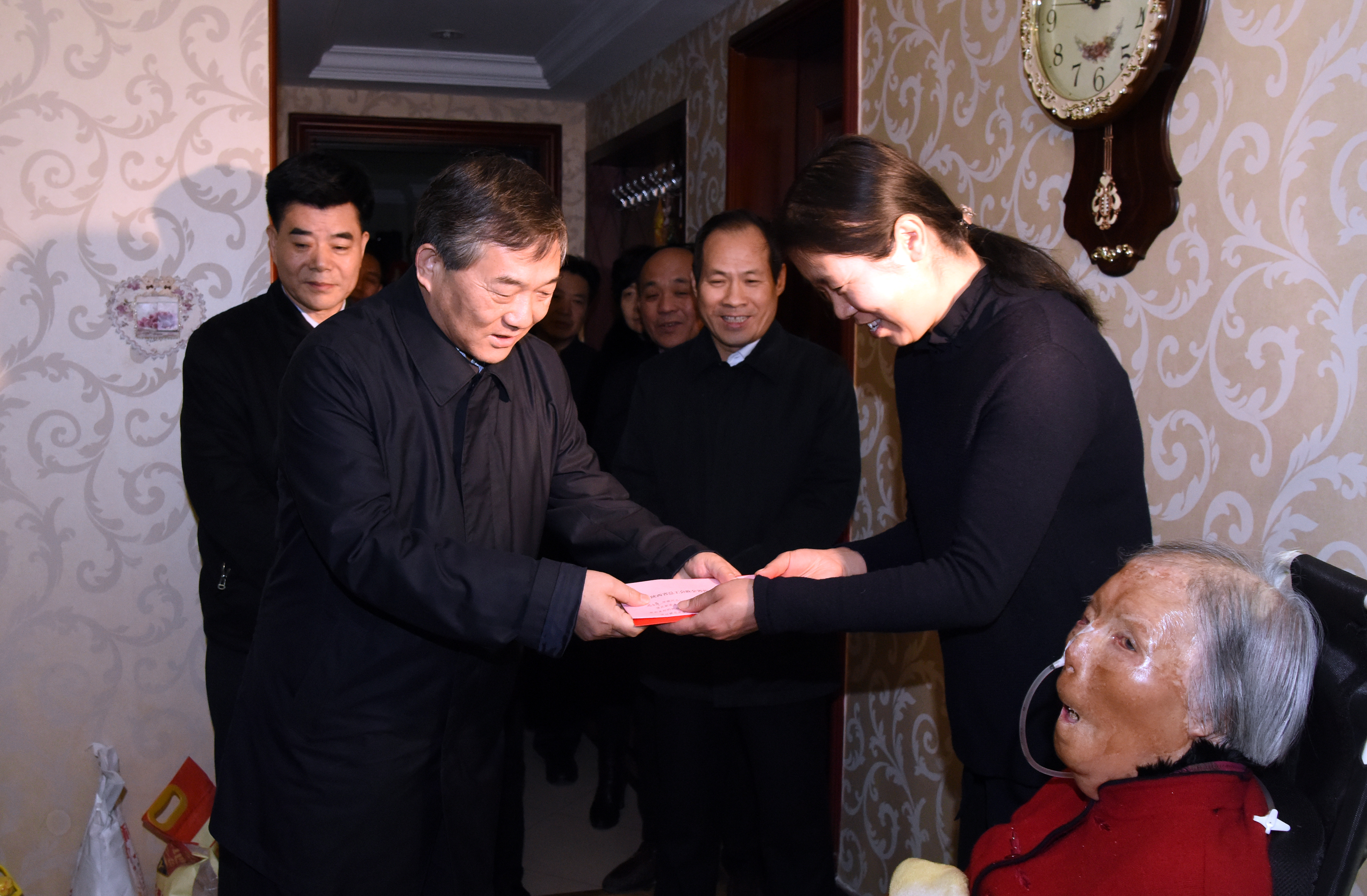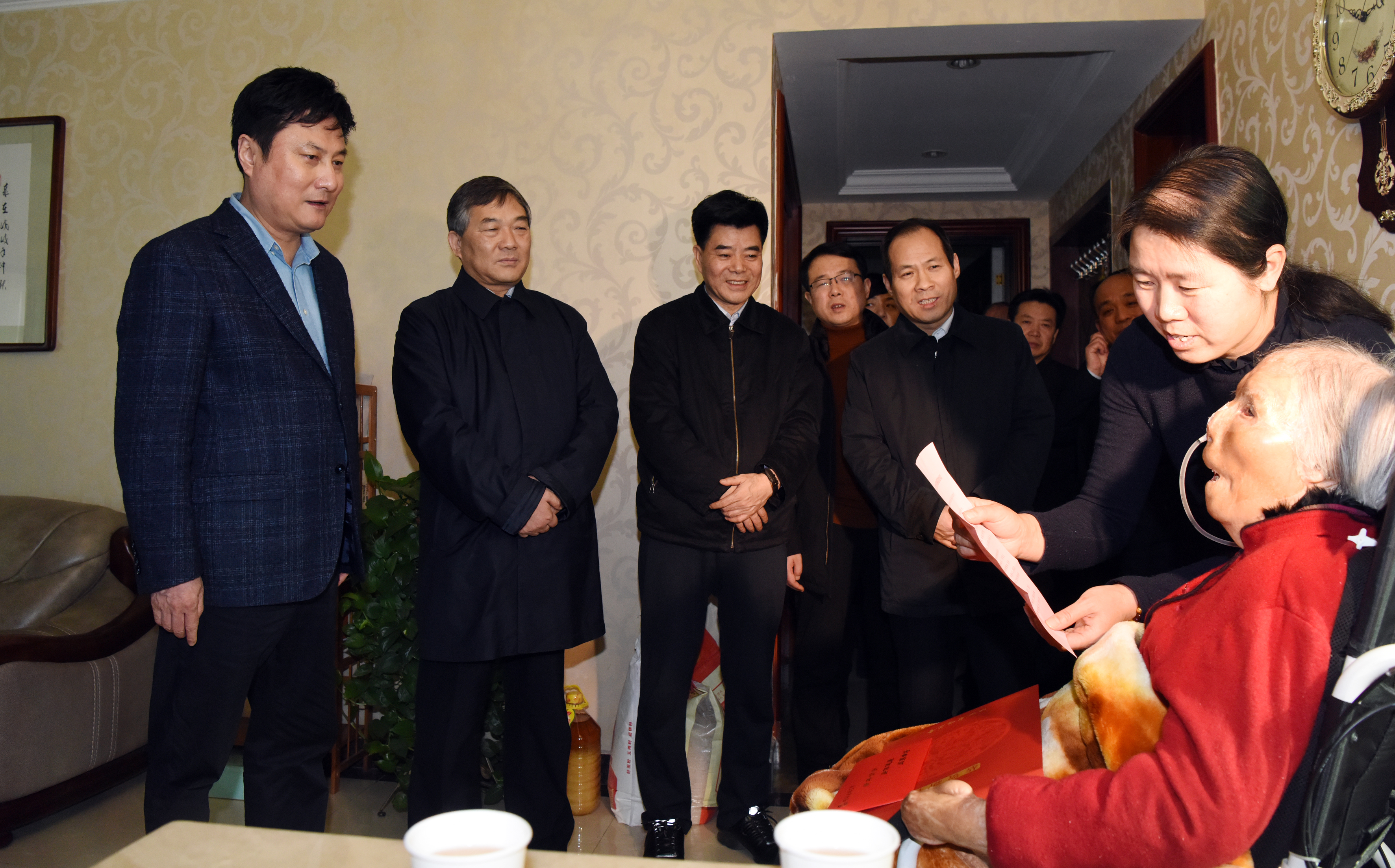 当郭大为一行向老人送上慰问金、慰问信和春联时,老人嘴角张了张,好像在表示感谢,她的女儿能读懂母亲的心声,贴着老人的耳朵大声说:“妈,省人大、省总工会领导来看您,还有慰问信,我给您读。”