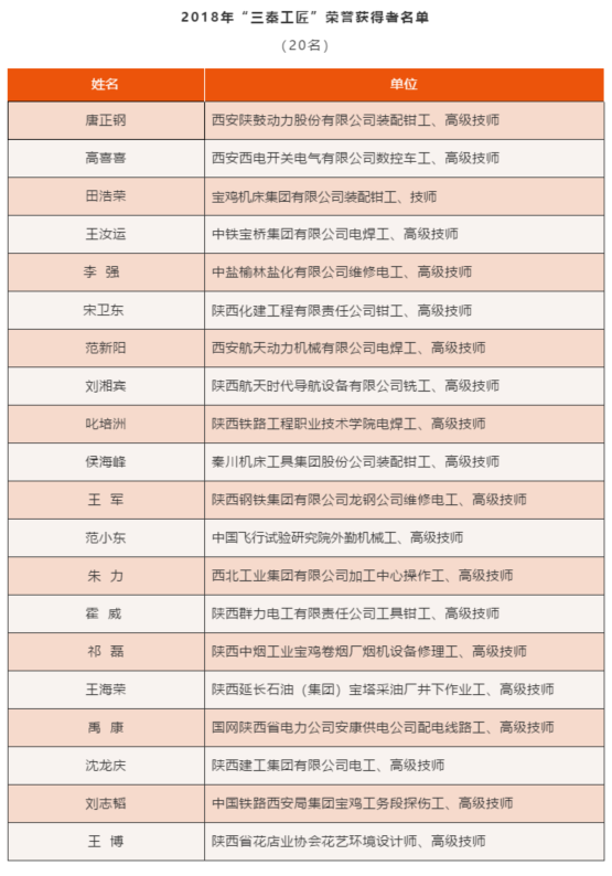 转载请注明: 陕西省总工会 » 陕西2018年“三秦工匠”表彰名单出炉 每人给予5万元奖励