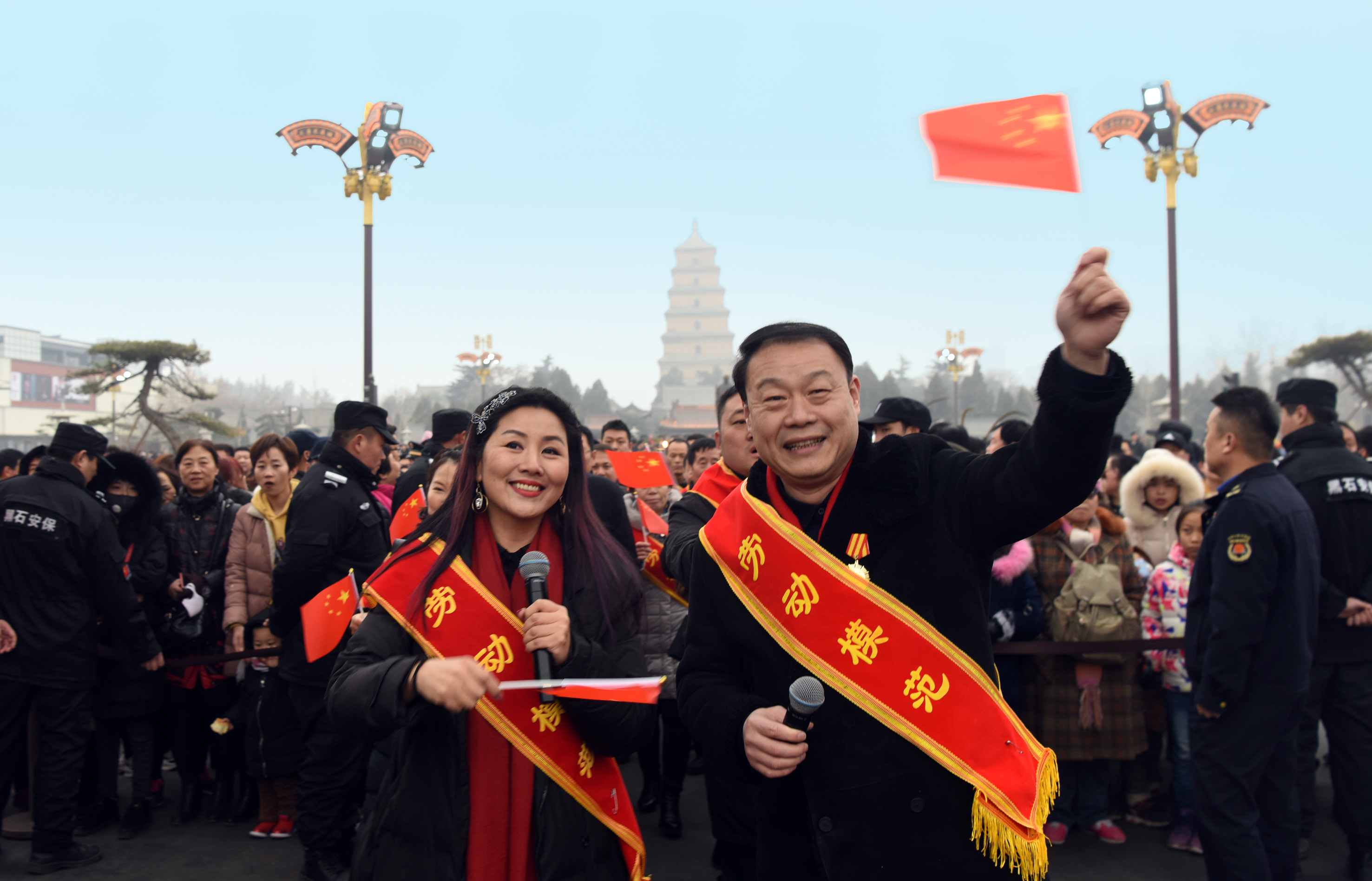 启动仪式上,省总工会常务副主席张仲茜,西安市委副书记、市政法委书记韩松,西安市人大常委会副主任、市总工会主席薛振虎等领导,同劳模共同高歌《我和我的祖国》。活动中,劳模分两组在大唐不夜城和大唐芙蓉园分别体验了“最中国”的传统年俗。