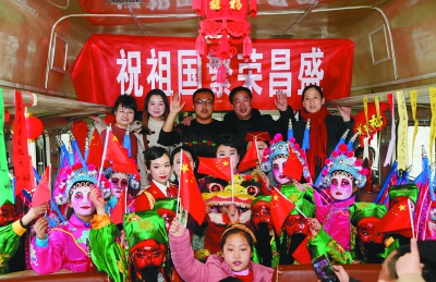 演职人员、旅客、列车工作人员合影,祝福祖国繁荣昌盛。刘松霖摄