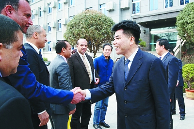 省总工会副主席丁立虎参加会见。双方签订了中国陕西省总工会、埃及石油工会友好交往协议书。(记者 王何军)