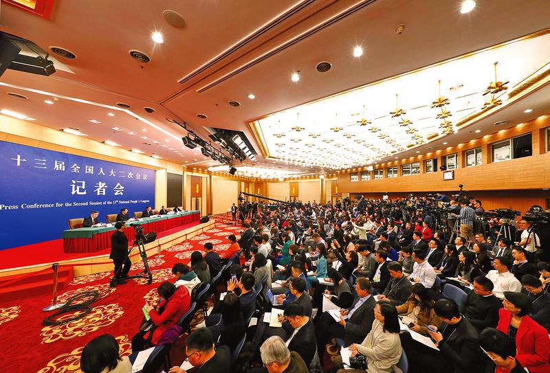 3月6日,十三届全国人大二次会议新闻中心举行记者会,邀请国家发展和改革委员会主任何立峰,副主任宁吉喆、连维良就“大力推动经济高质量发展”相关问题回答中外记者的提问。记者 沈伯韩摄