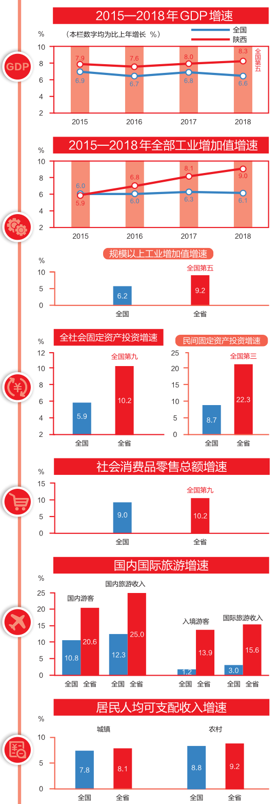数据来源于《中华人民共和国2018年国民经济和社会发展统计公报》及《2018年陕西省国民经济和社会发展统计公报》