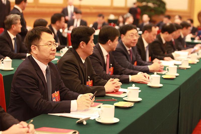 △第一位发言的代表雷金玉,是宁德市福安市坂中畲族乡后门坪村党支部书记兼村委会主任,也是福建团69名代表中最年轻的一位。(央视记者张晓鹏拍摄)