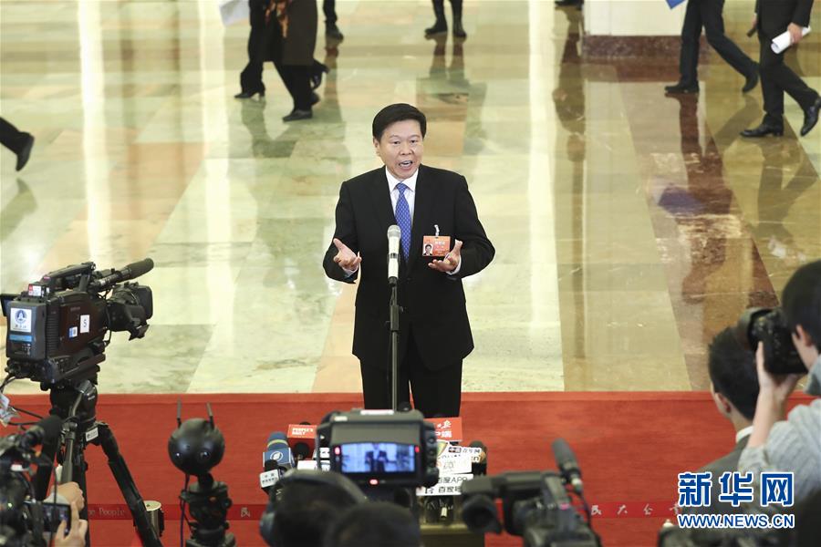 3月12日,十三届全国人大二次会议在北京人民大会堂举行第三次全体会议。这是国家税务总局局长王军在“部长通道”接受采访。 记者殷刚摄