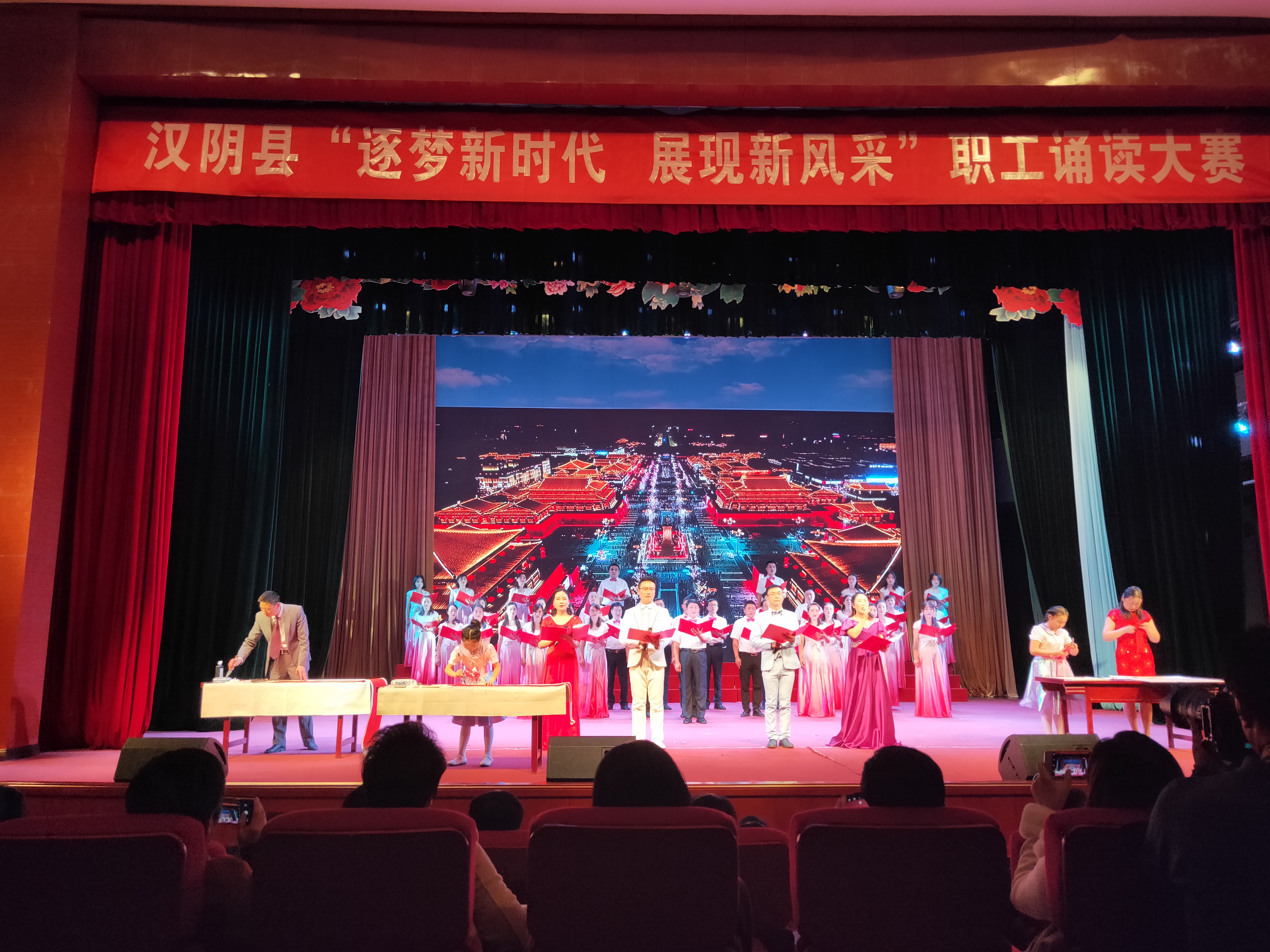 3月11日,由汉阴县委宣传部、县总工会、县妇联共同举办的庆祝新中国成立70周年“逐梦新时代· 展现新风采”为主题诵读大赛在县剧院举行,来自全县各镇、各部门共21个单位22个参赛队275人参加激烈的角逐。