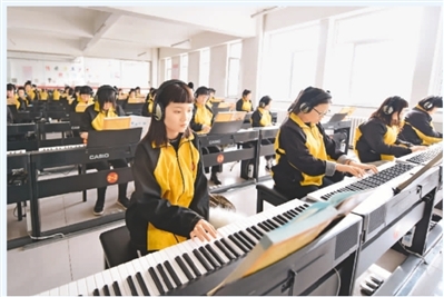 近年来,河北省定州市职业技术教育中心通过加强与当地企业对接,采取“校企结合”“工学结合”等方式,有针对性地培养订单式职业人才,受到用人单位欢迎。图为定州市职教中心学生在练习演奏电子琴。