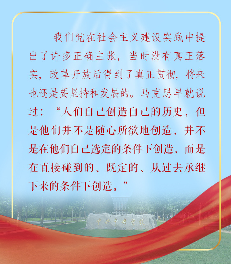 强调坚持和发展中国特色社会主义道路,习近平引用“风景这边独好”;学习和借鉴外国经验,习近平提醒千万不能“邯郸学步,失其故行”;坚持道路自信、理论自信、制度自信,习近平勉励我们真正做到“千磨万击还坚劲,任尔东西南北风”。妙语频出,发人深省。