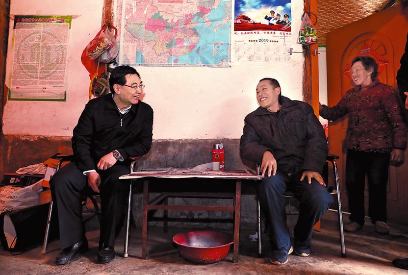 四月十日,省委书记胡和平在商洛市山阳县调研脱贫攻坚工作。在十里铺街道办王庄村,胡和平走进贫困户杨栓劳家,了解家庭收入、教育和医疗支出等情况,鼓励他和家人坚定脱贫信心,积极发展生产,早日脱贫致富奔小康。 记者 宋红梅摄