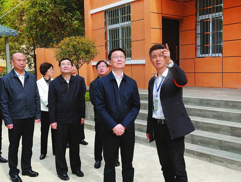 4月14日至16日,中共中央政治局常委、国务院副总理韩正在陕西调研。这是4月15日,韩正来到汉中市武乡林场,考察林业保护和国有林场改革,了解林业执法和规范化建设情况。 新华社记者 庞兴雷摄