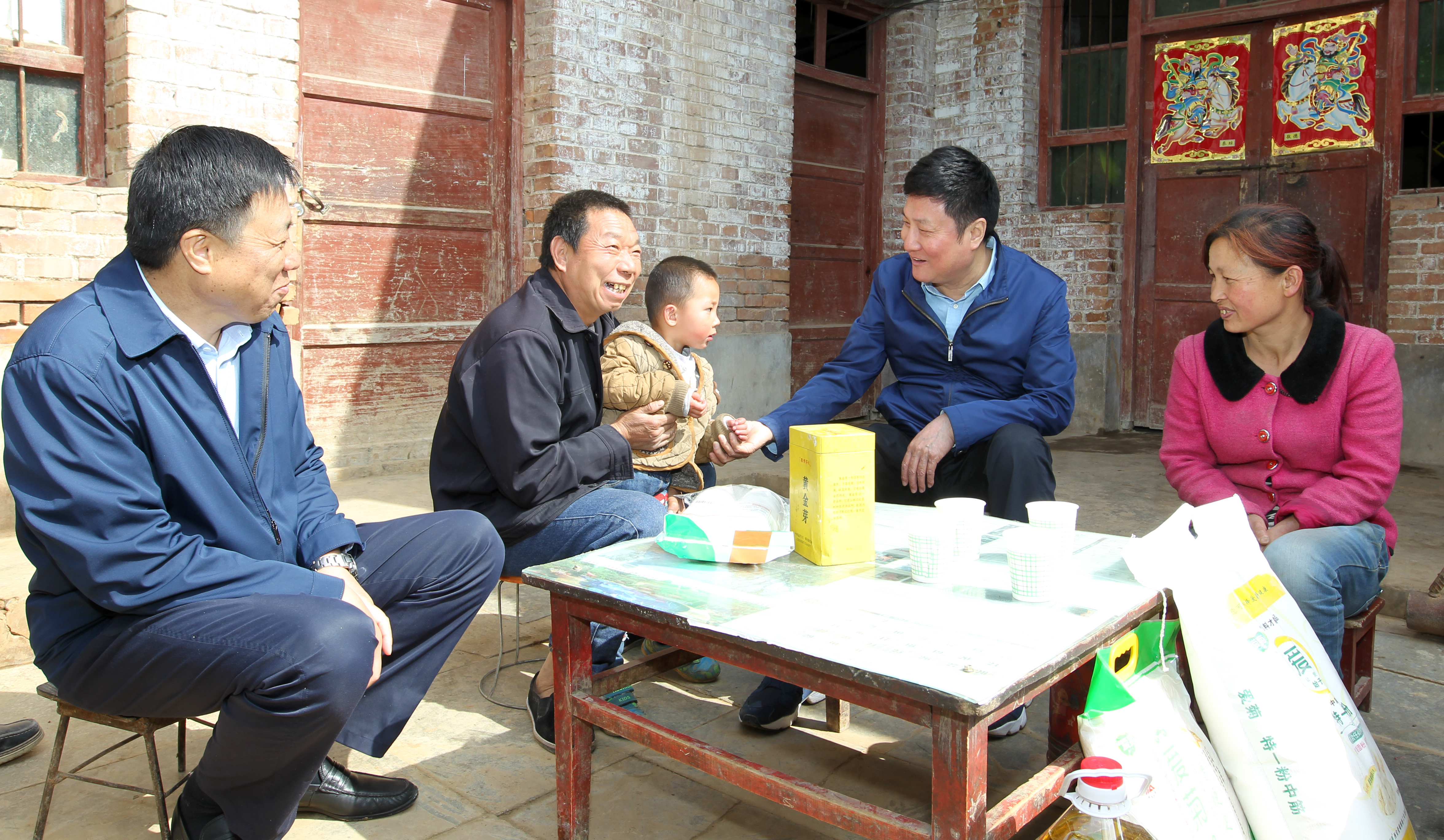 在贫困户刘新庄家里,郭大为(右二)详细了解“两不愁三保障”等政策落实情况