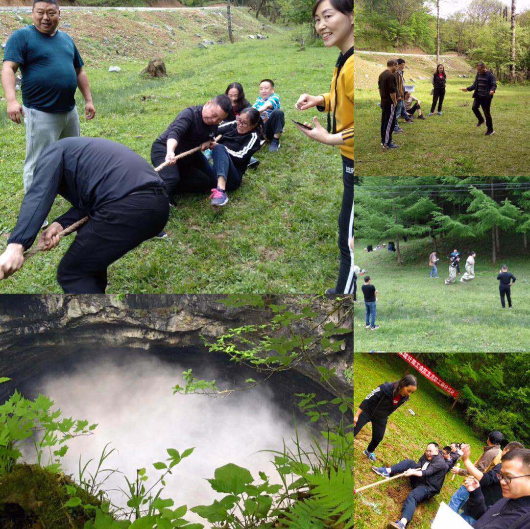 本次主题活动28人参加,先是参观了“天悬天坑”“凌冰洞”等自然景观,然后在草坪上举行了趣味活动比赛。比赛项目分集体项目和个人项目,集体项目有拔河比赛、齐心协力、滚雪球,个人项目有跳绳、企鹅漫步、袋鼠跳、摸石过河。