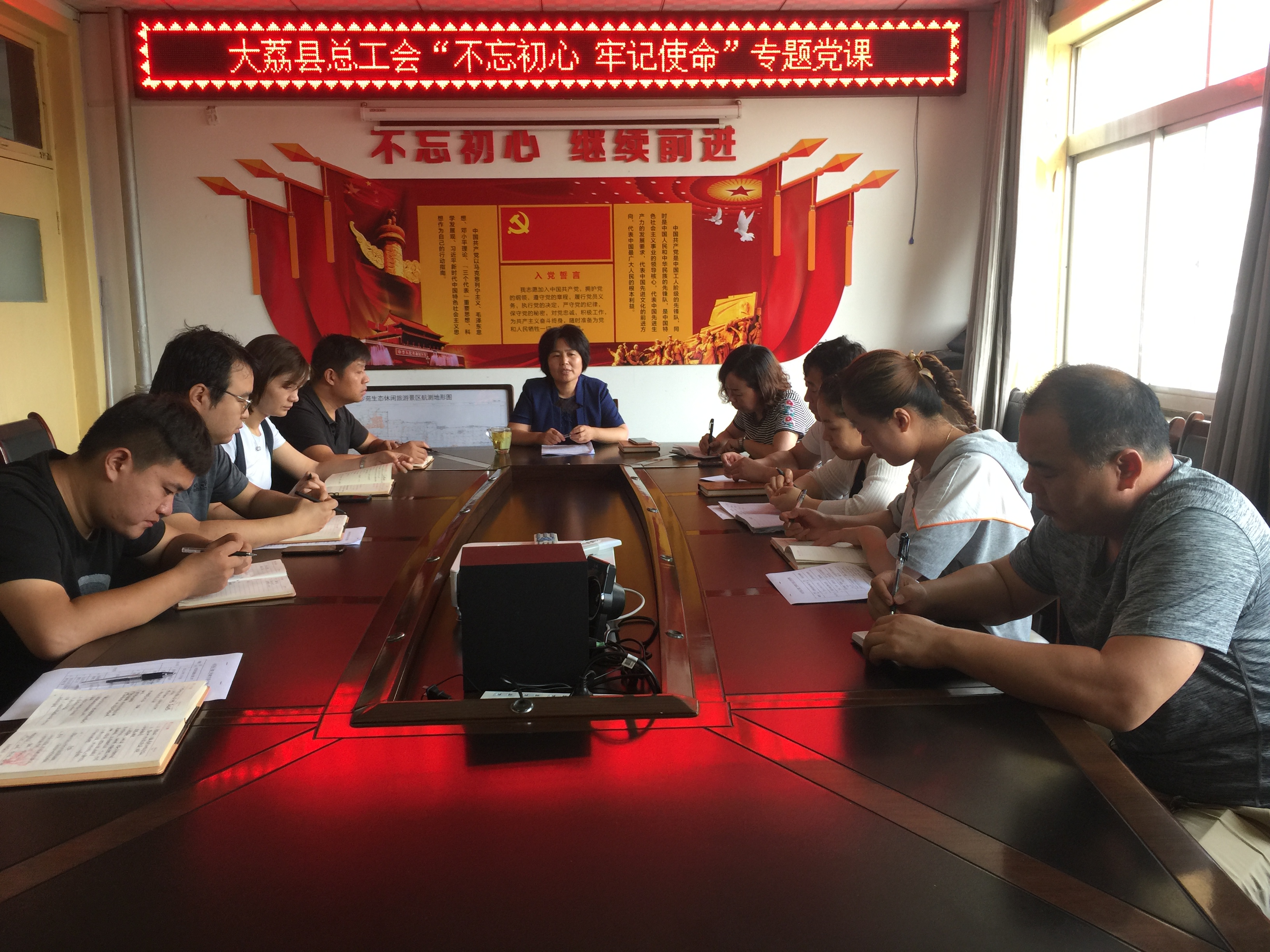 围绕“不忘初心 牢记使命”讲专题党课。县总工会党组书记王明芳以《静心凝神学原著,不忘初心担使命》为题,从解决学什么、怎么学、怎么做三个方面进行了详细的讲解和深入分析,提高了全体党员的思想认识,坚定了理想信念。她要求每名党员干部做到:不忘初心,信念过硬;对党忠诚,政治过硬;担当作为,责任过硬;增强本领,能力过硬;勤政清廉,作风过硬。每名工会干部都应立足新时代、完成新使命、主动新担当、勇于新作为,为党和国家分忧,为百姓解难。