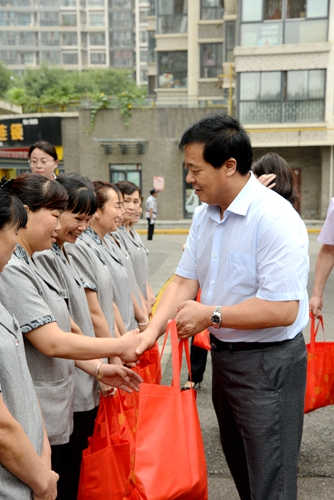 调研组一行深入君盛资产子公司金泰物业假日花城社区进行实地调研走访。询问并听取了金泰物业关于公司服务经营和工会工作开展情况的汇报,慰问了一线职工,并开展送清凉活动,发放慰问品,为基层职工带来了各级工会领导的亲切关怀。