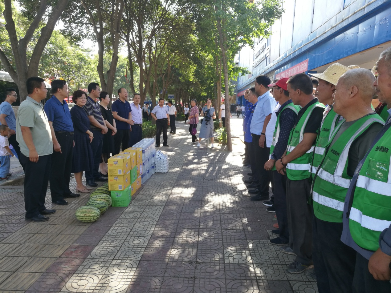 盛夏送清凉,工会献爱心。720日下午,扶风县总工会在全县开展 “夏送清凉”慰问活动,为坚守在高温工作一线的职工送去饮料、矿泉水、毛巾、西瓜等防暑降温品, 体现了工会“娘家人”对广大干部职工的关怀和爱护。