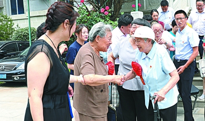 林秀英(右)与张惠敏亲切问候