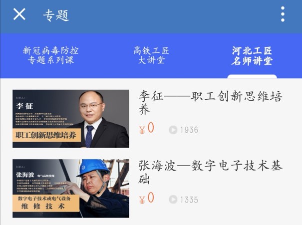根据中央要求,“技能强国—全国产业工人技能学习平台”课程在疫情期间完全免费对外开放,并专门上线“大国工匠直播课堂”栏目,每天邀请各行业劳动模范、大国工匠、技术专家开展网上直播活动。与此同时,各级工会积极动员本地工匠参与,“河北工匠讲堂”“江苏工匠讲堂”“高铁工匠讲堂”等地区、产业栏目纷纷上线;为使返工职工更好的了解新冠病毒防护的有关知识,平台专门与国家数字化学习中心联手推出了“新型冠状病毒防控公益课程60讲”,以视频微课堂形式讲解有关新冠病毒的防护知识。据悉,截止目前浙江省总工会及其11个地市总工会网站均完成了与“技能强国-全国产业工人技能学习平台”的对接工作。