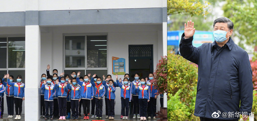 习近平总书记21日来到陕西省安康市平利县老县镇,在锦屏社区、镇卫生院、中心小学和茶园考察当地脱贫攻坚等情况。 (文字记者:张晓松 摄影记者:鞠鹏、谢环驰、燕雁、翟健岚)