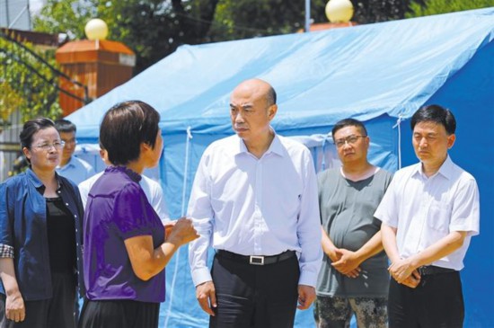 在受灾严重的石门镇,刘国中察看水情、灾情,向村民了解撤离过程和受灾情况,向县镇负责同志询问防汛救灾措施落实和人员伤亡情况,要求他们竭尽全力做好失联人员搜救工作,严密防范滑坡、房屋倒塌等次生灾害,加快抢修水电、交通、通信等基础设施,尽快恢复生产生活秩序。随后,刘国中来到位于桥河村党群服务中心的安置点,看望转移安置群众,了解生活保障情况,叮嘱负责同志搞好生活必需品供应,安排好群众生活,做好卫生防疫、防暑降温等工作。
