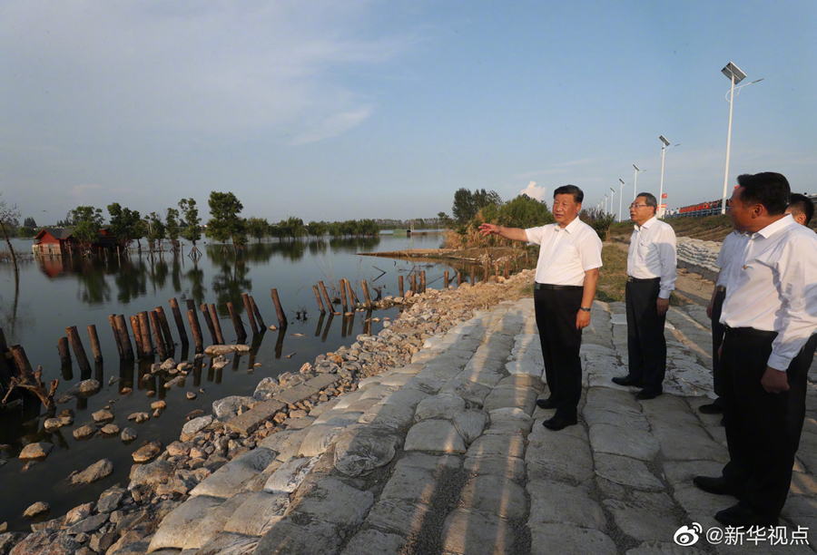 习近平总书记19日下午在安徽省合肥市考察调研。他在肥东县十八联圩生态湿地蓄洪区巢湖大堤罗家疃段,察看巢湖水势水情,看望慰问防汛抗洪一线人员、先进典型代表和参加抗洪抢险的解放军、武警部队官兵。当天下午,习近平在合肥还参观了安徽创新馆和渡江战役纪念馆,了解安徽省科技创新和新兴产业发展情况,重温革命历史、缅怀革命先烈。(文字记者:张晓松 摄影记者:鞠鹏 王晔 燕雁)