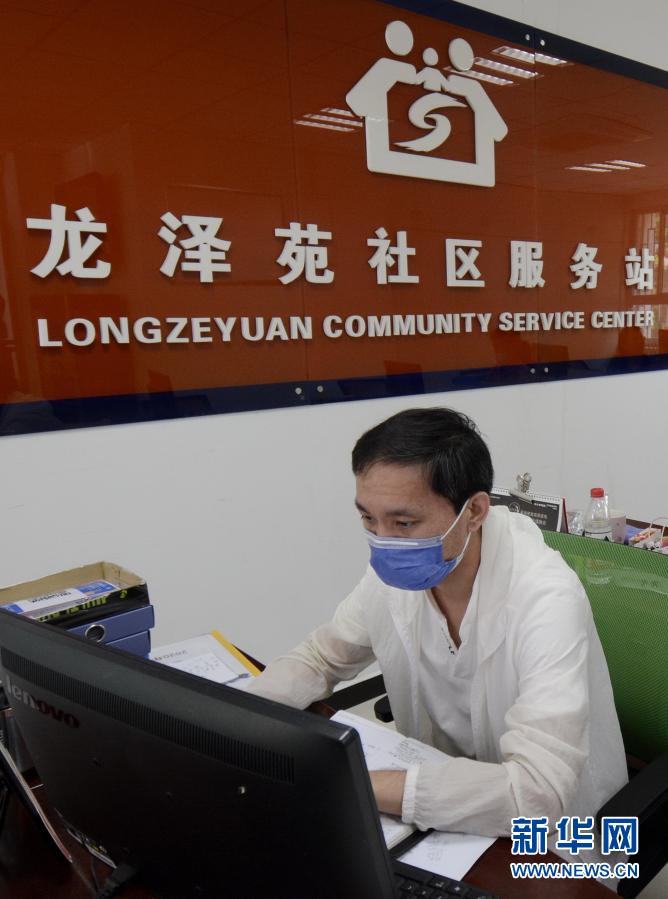 社区工作人员在回龙观龙泽苑社区服务站工作(8月11日摄)。新华社记者 李欣 摄