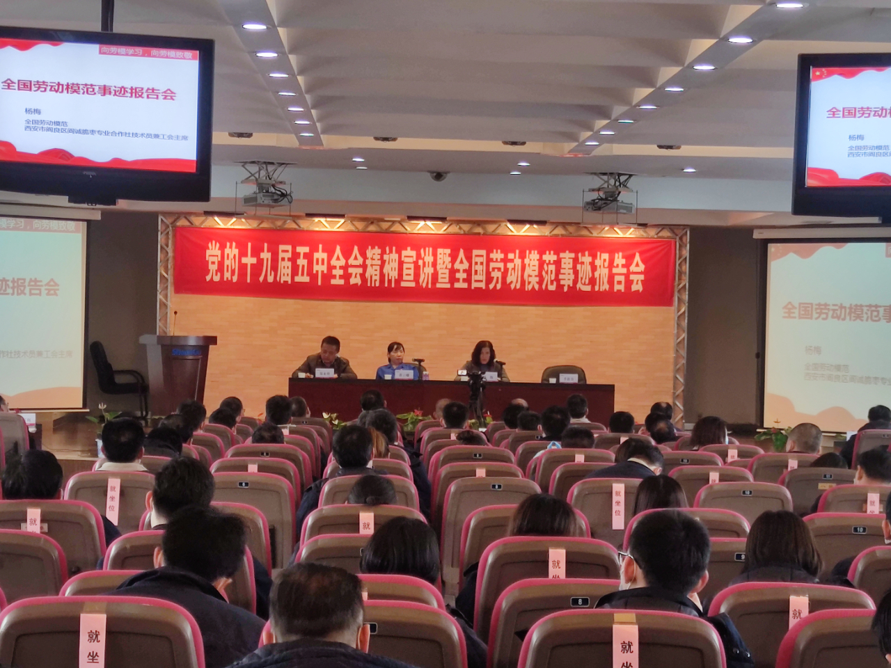 全国劳模、陕西五环(集团)实业有限责任公司织造车间值车工黄云娜,作了《我的纺织大工匠梦》的事迹报告。报告讲述了她始终弘扬“赵梦桃精神”,秉承“干就干最好,干就干一流”的工作理念,总结出的“强捻布操作法”被广泛推广应用;“传帮带”了23名骨干徒弟,成为纺织行业高技能工匠人才。她2015年荣获全国优秀农民工, 2017年当选党的十九大代表。
