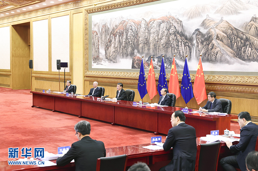 国家主席习近平30日晚在北京同德国总理默克尔、法国总统马克龙、欧洲理事会主席米歇尔、欧盟委员会主席冯德莱恩举行视频会晤。中欧领导人共同宣布如期完成中欧投资协定谈判。