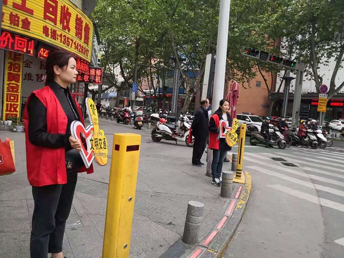 最后,大家充分发扬不怕苦不怕累的劳动精神,纷纷手持警示宣传牌,来到影剧院十字路口开展交通文明劝导活动,现场劝阻不文明行为38起,帮助老弱病残过马路9次,发放生态文明和垃圾分类宣传彩页600余份,鼓励大家积极践行低碳生态理念,多使用公共交通出行;掌握好垃圾分类标准,改变不文明生活陋习。