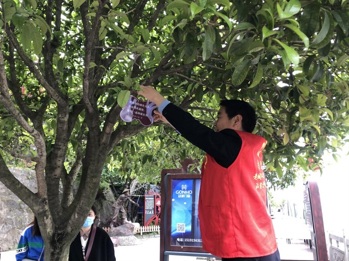 活动中,大家三两个人一组,拿着钳子、铁丝、板凳等劳动工具在汉江龙舟文化园公共绿地,悬挂市总工会事先制作好的爱绿护绿标牌,提醒游客行人自觉爱绿护绿,并与临街商户签订认管认养承诺书。一个个造型精美的宣传标牌吸引了不少路人驻足观看。