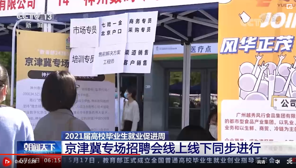 央视网消息:2021届也就是今年即将毕业的全国普通高校毕业生总规模达909万。昨天(5月17日),教育部启动2021届高校毕业生就业促进周活动,将通过举办系列招聘会的方式为毕业生提供百万优质岗位。