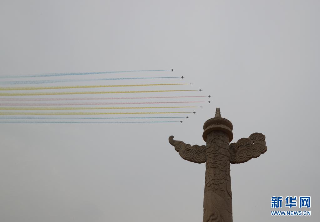 7月1日上午,庆祝中国共产党成立100周年大会将在北京天安门广场隆重举行。这是飞行庆祝表演。新华社记者 殷刚 摄