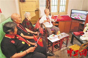 百岁党员观盛典颂党恩