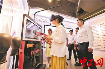 福州市职工创客借助自主研发的智慧VR系统身临其境见证庆祝中国共产党成立100周年大会。工人日报-中工网记者 李润钊 摄