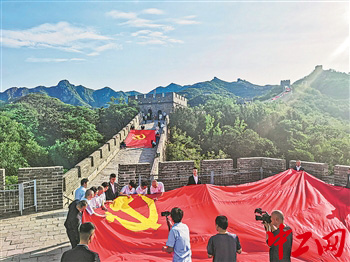 首都职工绣制十面巨幅党旗庆祝中国共产党百年华诞。工人日报-中工网记者 赖志凯 摄