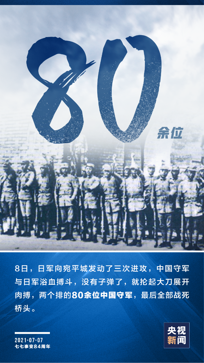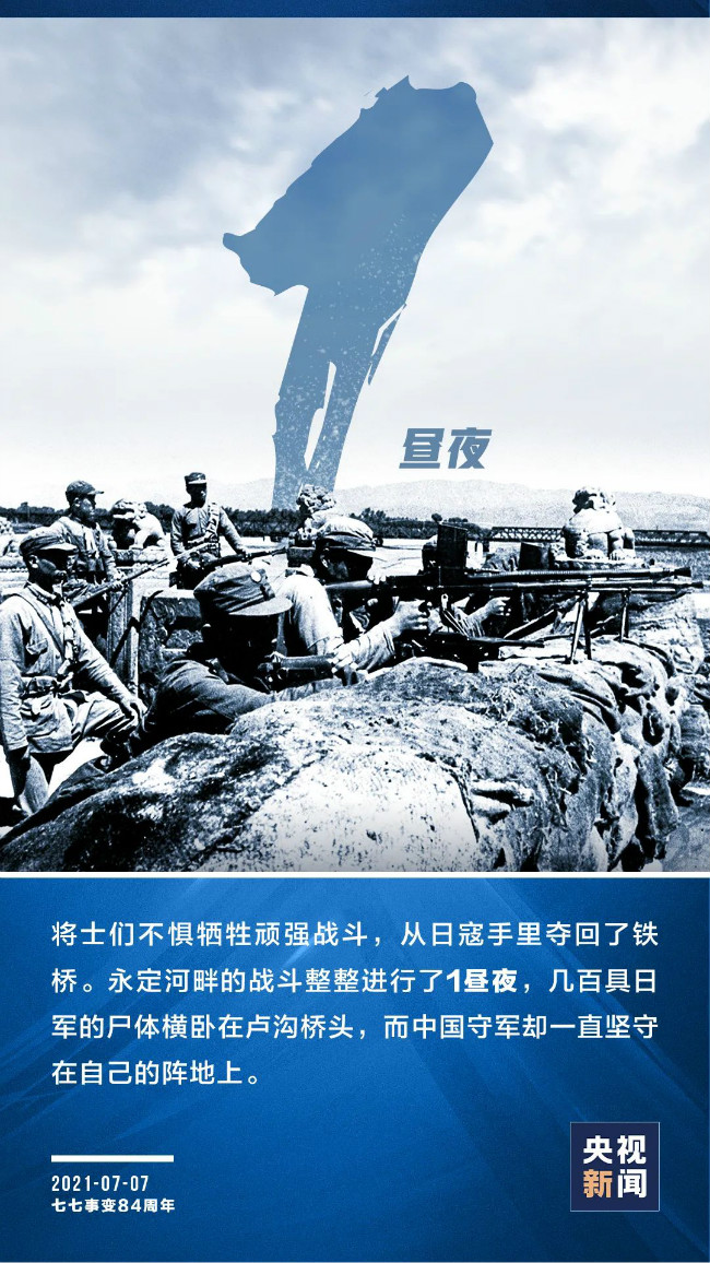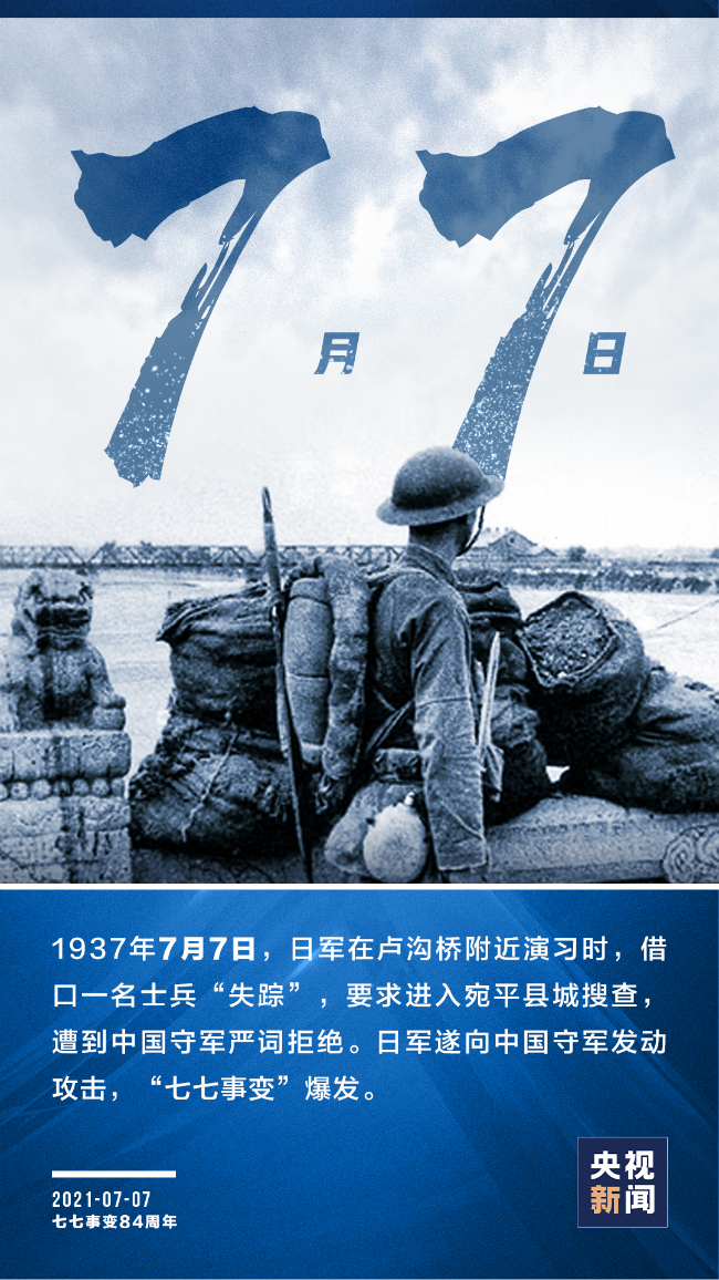 今天(7月7日)是七七事变爆发84周年。84年前,日本侵略者悍然发动全面侵华战争,无数中华儿女不顾生死,为保卫河山浴血奋战,奏响反抗侵略的英雄壮歌。